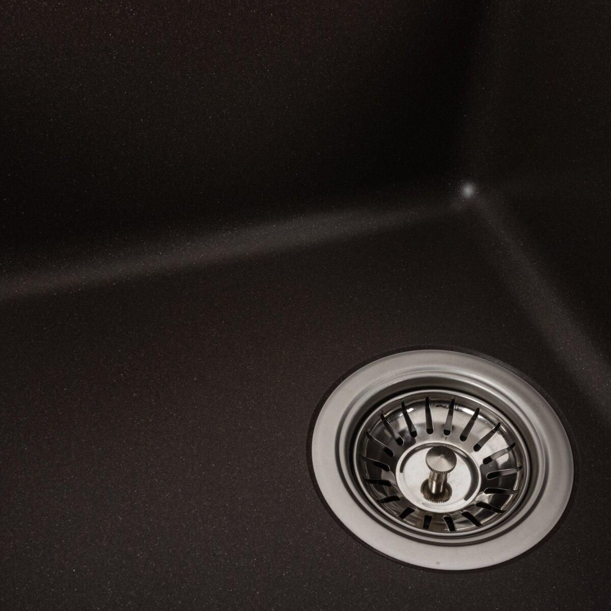 Мийка має матову фактуру та приємний для ока колір — темна скеля, що дає змогу їй легко вписатися в інтер'єр кухні.