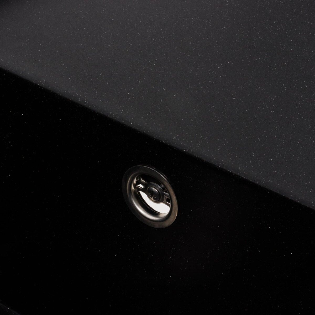 Гранітна мийка для кухні Platinum 9651 ATLAS матовий Чорний металік (у срібну крапку) — це ідеальне поєднання стильного дизайну та високої функціональності, яке надасть вашій кухні особливого шарму.