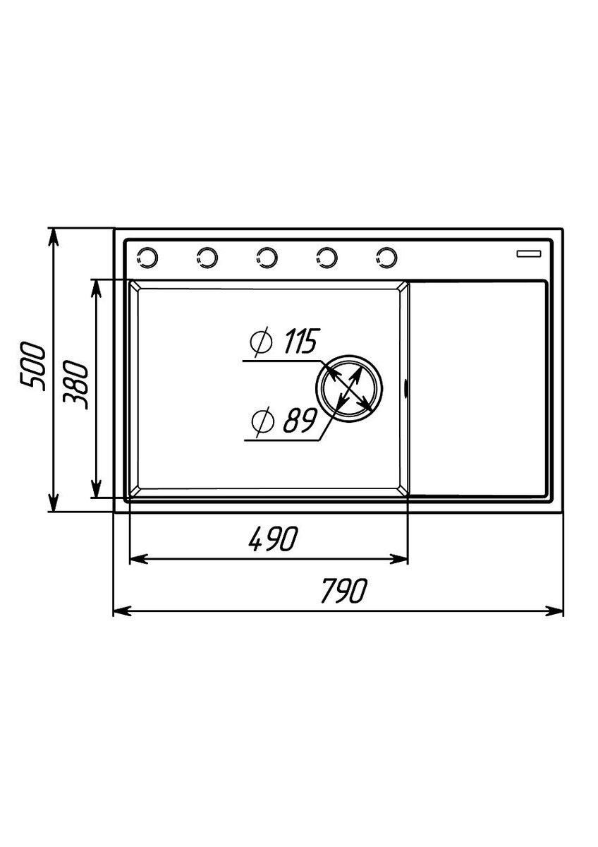 Ця мийка має розміри, що роблять її ідеальним вибором для різних кухонь. З розмірами 790х500х200мм вона легко впишеться навіть у невеликі простори, забезпечуючи високий рівень зручності та функціональності. Розмір чаші 490x380x200 мм.