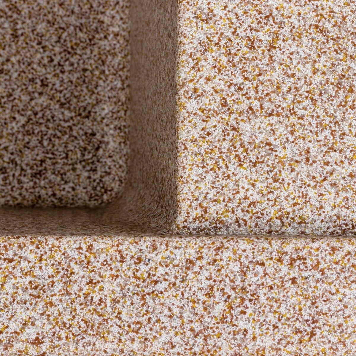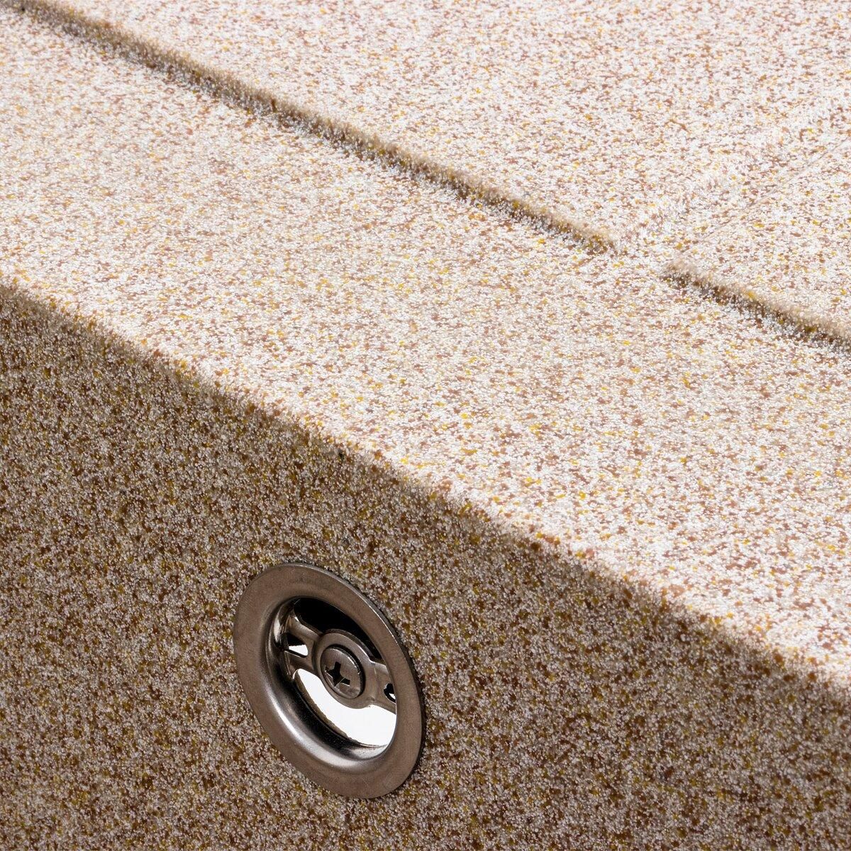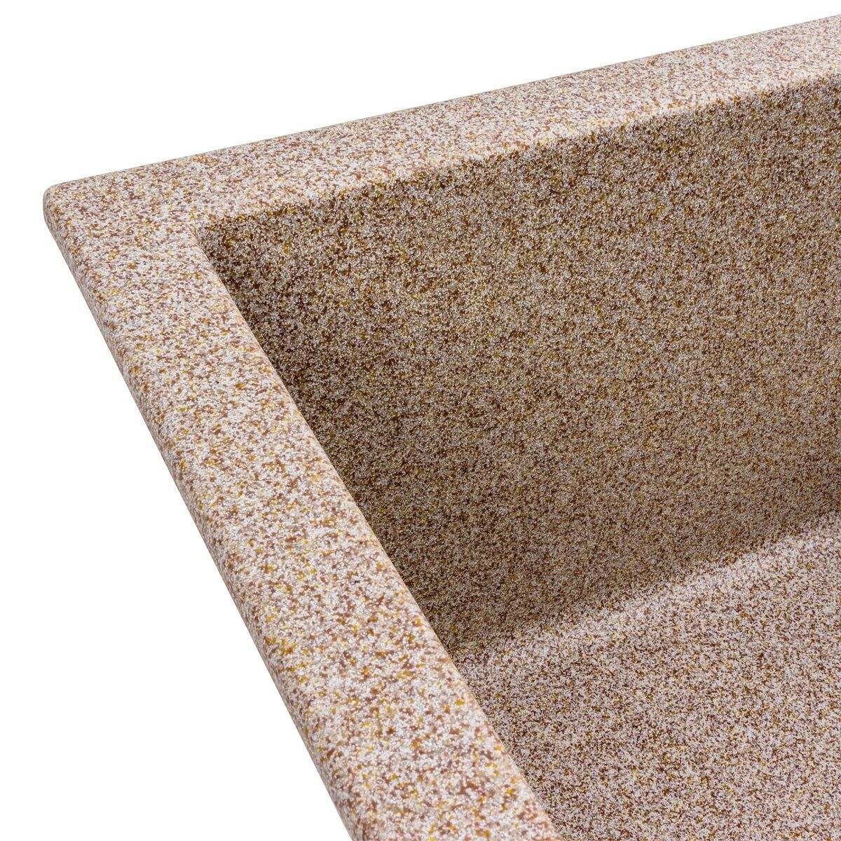 Ця мийка виготовлена за допомогою технології Solid Surface, що гарантує її якість і довговічність. Цей матеріал виробляється методом лиття, і в ньому поєднуються 80% кварцового піску та 20% смоли. Зорово він схожий на природний камінь, а його поверхня є теплою й шовковистою на дотик.