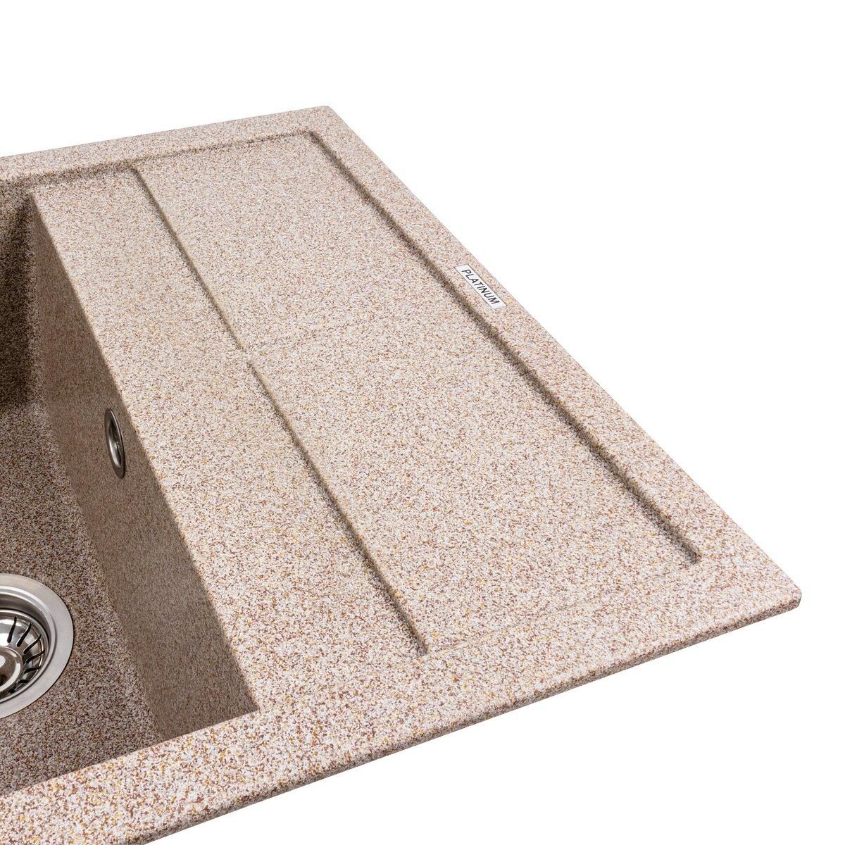 Гранітна мийка для кухні Platinum 6550 LOTOS матова карамель — це вишукане рішення для вашої кухні, що поєднує стильний дизайн і практичність.