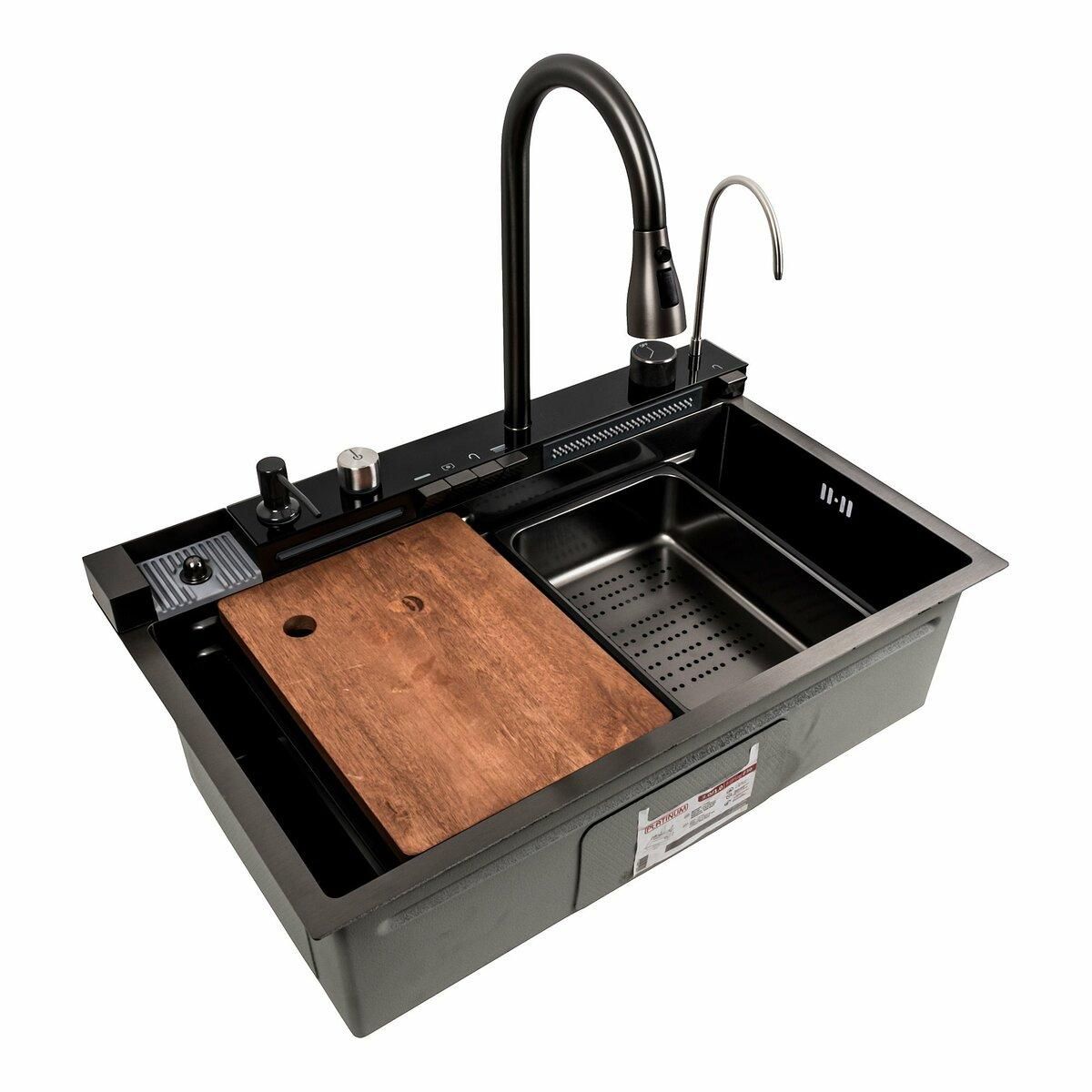 Кухонна мийка 75*45G сатин Platinum Handmade "Водоспад" з повною комплектацією