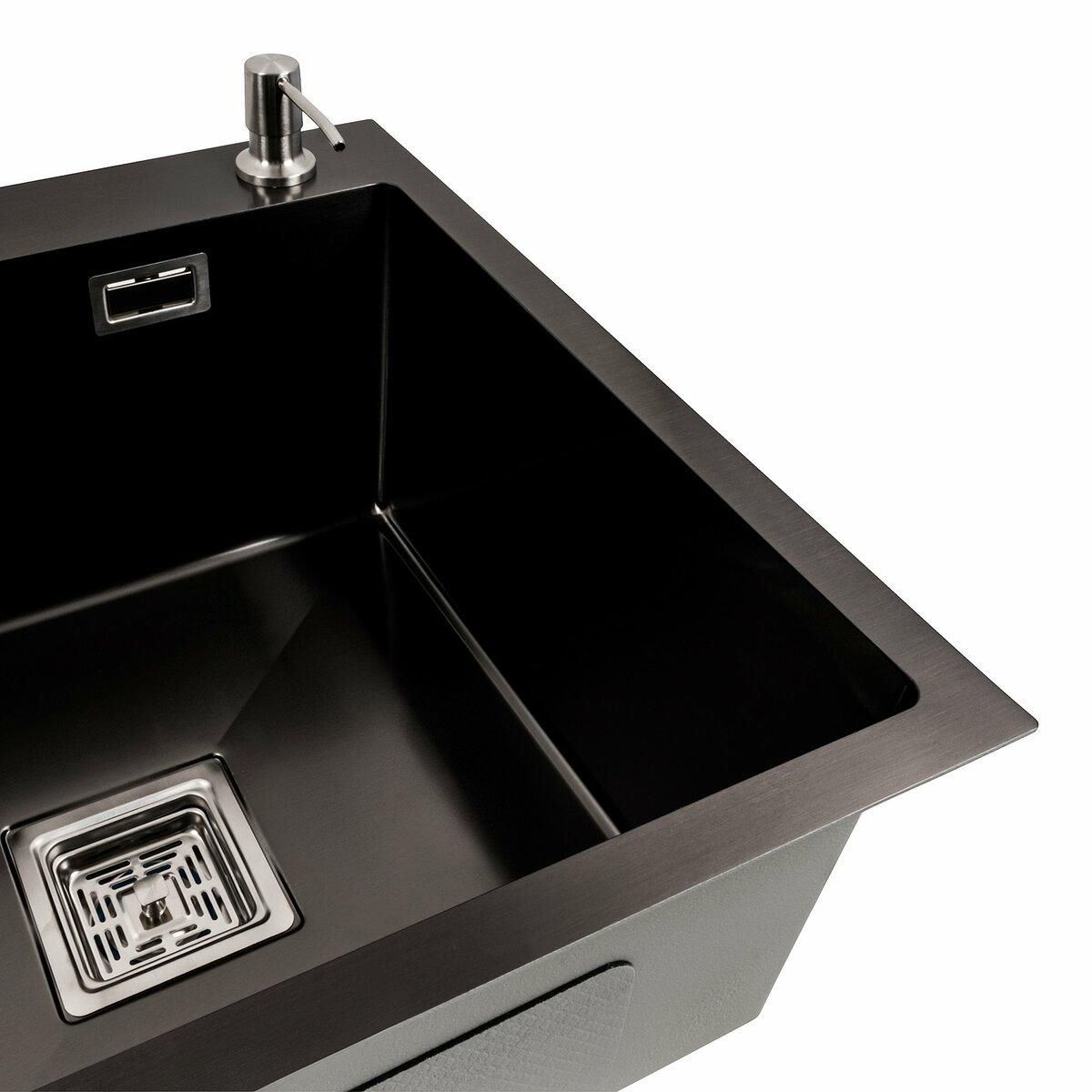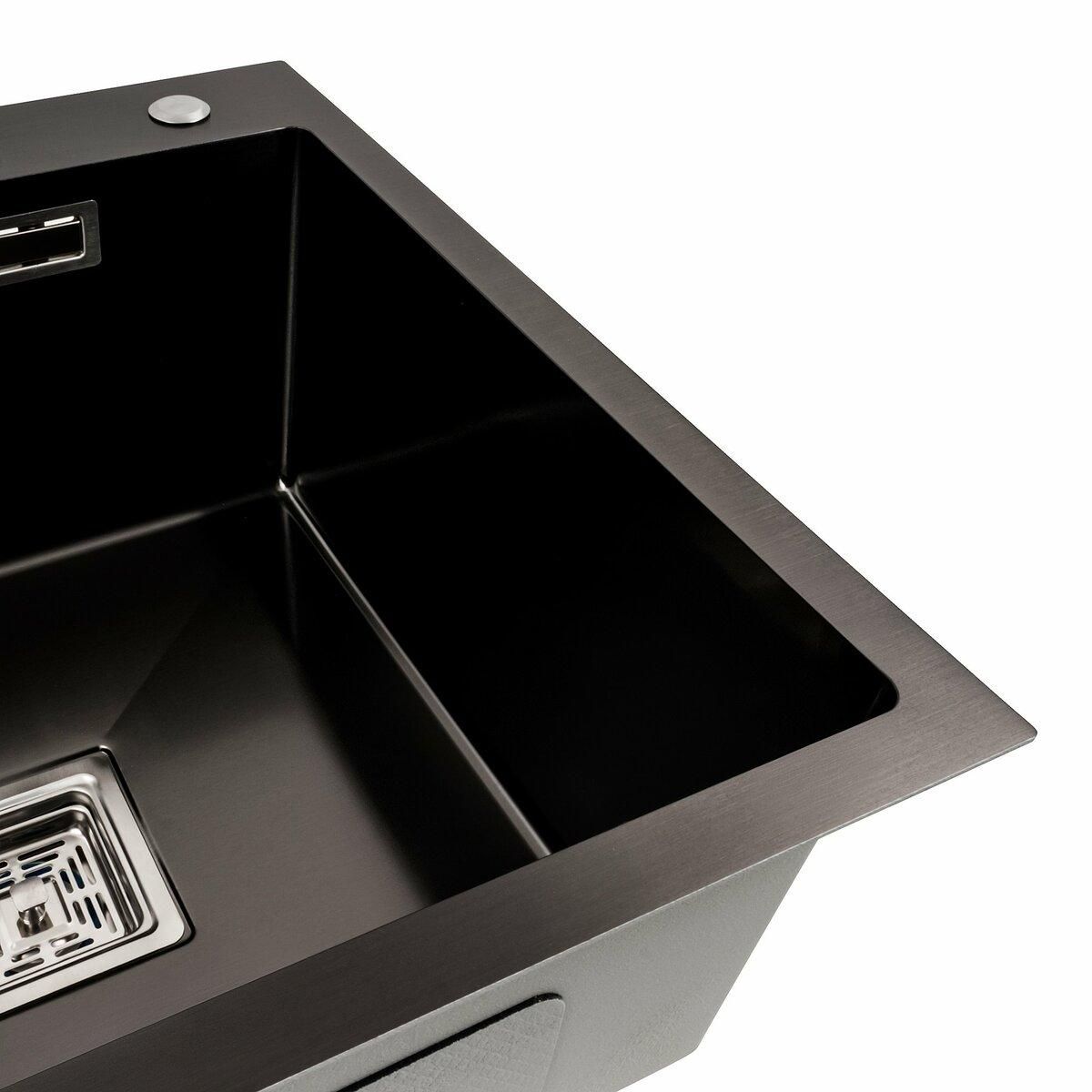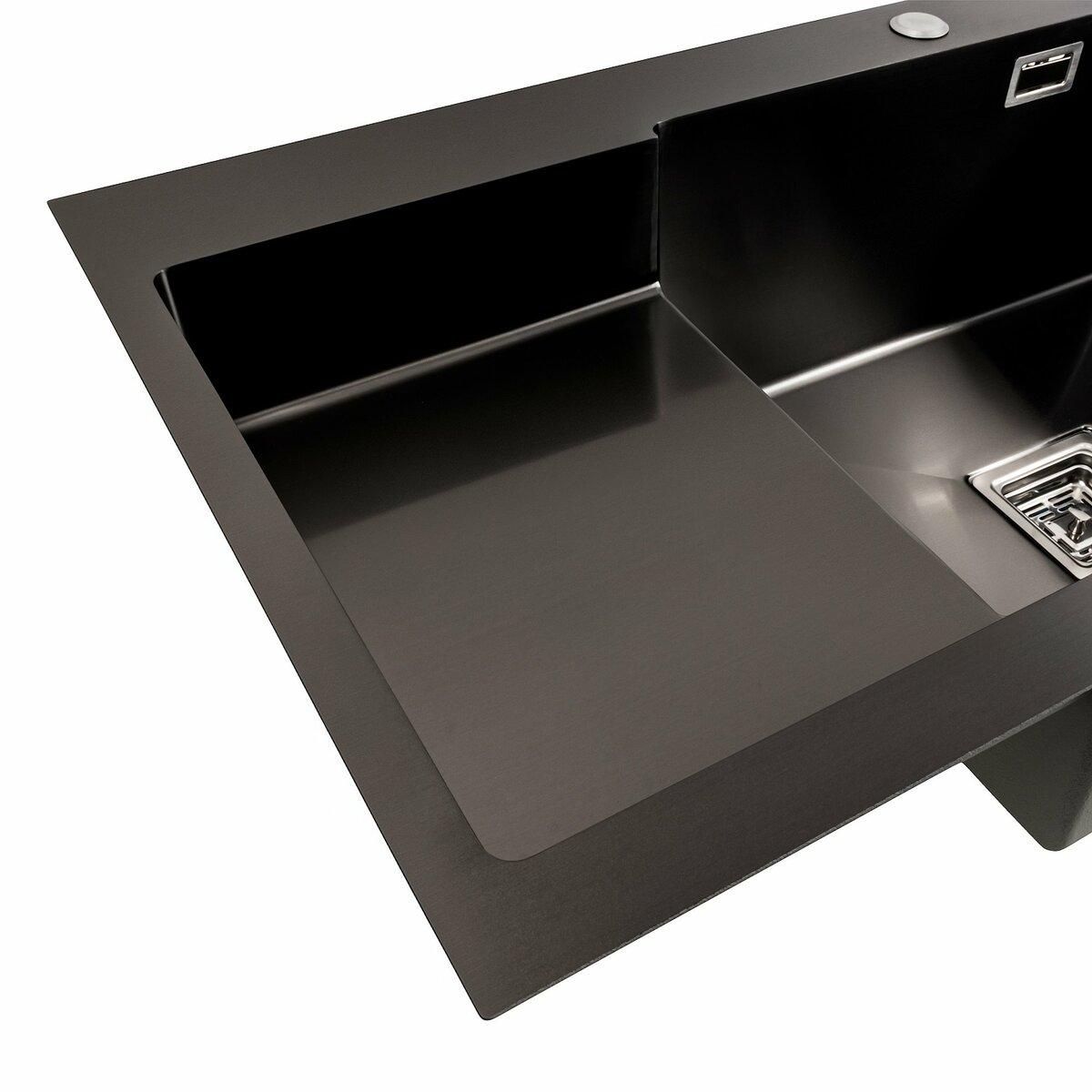 Створіть ідеальну кухню з кухонною мийкою 78*50С R PVD чорною Platinum Handmade. Ця чорна сталева красуня з поглибленою полицею — не просто мийка, а справжній шедевр у світі кухонного дизайну.