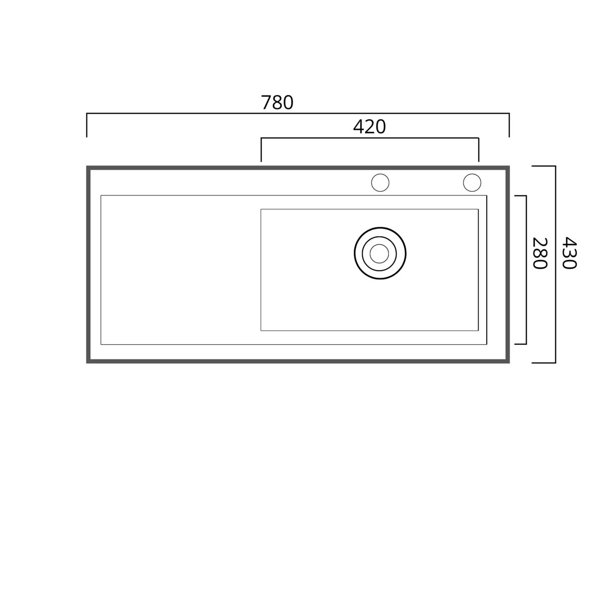 З розмірами 780х430х210 мм і розміром чаші 420х280х210 мм ця мийка ідеально підходить для будь-якої кухні, забезпечуючи вдосталь місця для миття та приготування їжі.