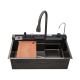 3. Комплектація: у комплекті з мийкою постачається повний набір необхідних аксесуарів для комфортної роботи на кухні, як-от ополіскувач склянок, обробна дошка з цільного дерева, сифон, кошики для миття, дозатор для мийного засобу, змішувач із висувним виливом, кран "Крапля" для фільтрованої води.