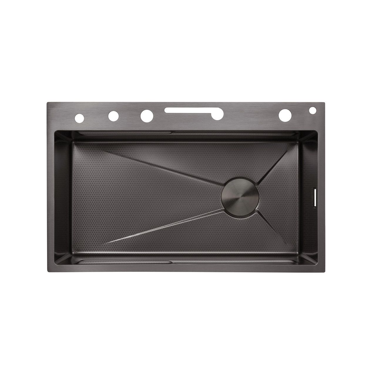 Кухонна мийка Kroner KRP Schwarze — SET7546ARTHM PVD (3.0/0.8 мм) являє собою чудове поєднання стилю, функціональності та високої якості. Основні особливості цього товару: