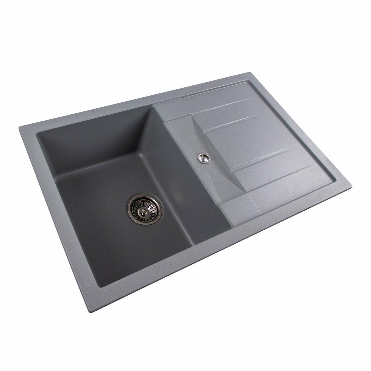 Гранітна мийка для кухні Platinum 7850 TROYA матова Сірий металік