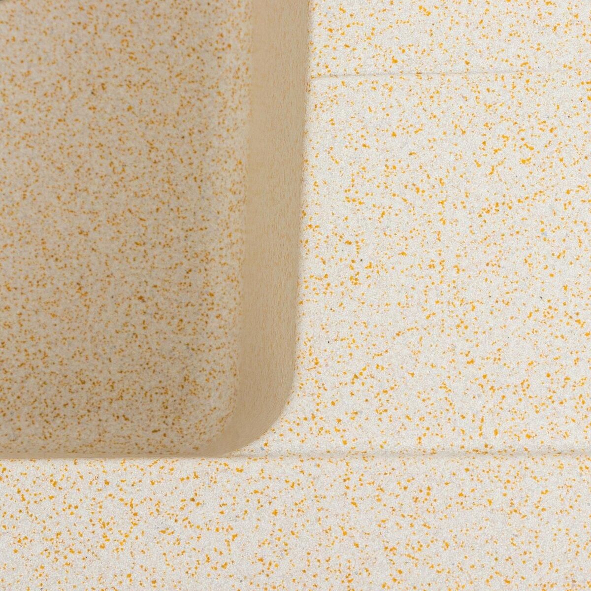 Ця мийка виготовлена за допомогою технології Solid Surface, що гарантує її якість і довговічність. Цей матеріал виробляється методом лиття, і в ньому поєднуються 80% кварцового піску та 20% смоли. Зорово він схожий на природний камінь, а його поверхня є теплою й шовковистою на дотик.