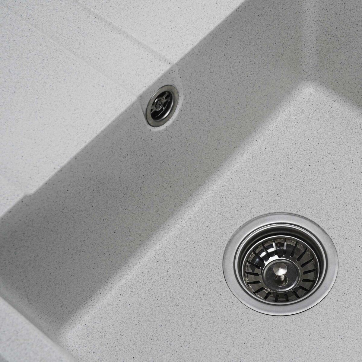 Мийка на 80% складається з кварцу та на 20% з надзвичайно твердої акрилової смоли, завдяки чому невибаглива в догляді, а також має великий запас міцності.