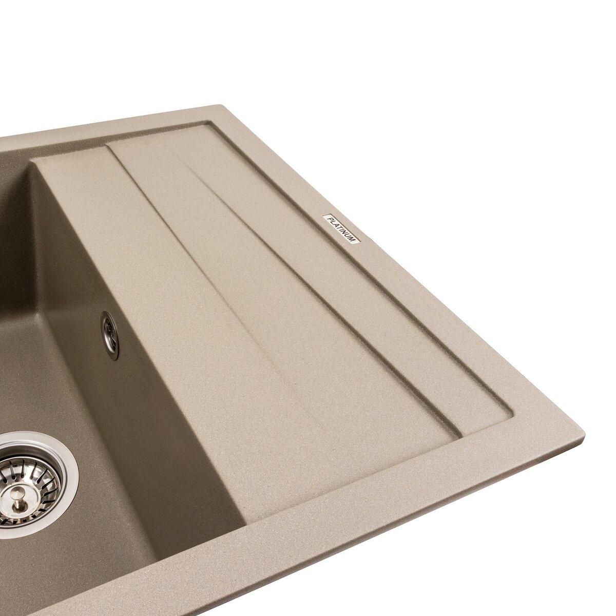 Гранітна мийка для кухні 7050 CASCADA кольору Титан українського бренда Platinum — це стильна, врізна прямокутна мийка, яка своїм виглядом прекрасно доповнить дизайн вашої кухні. Мийка на 80% складається з кварцу та на 20% з дуже жорсткої акрилової смоли, завдяки чому невибаглива в догляді, а також має великий запас міцності.