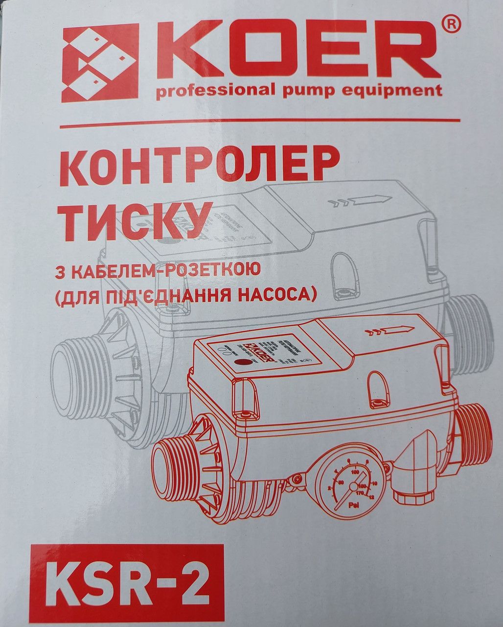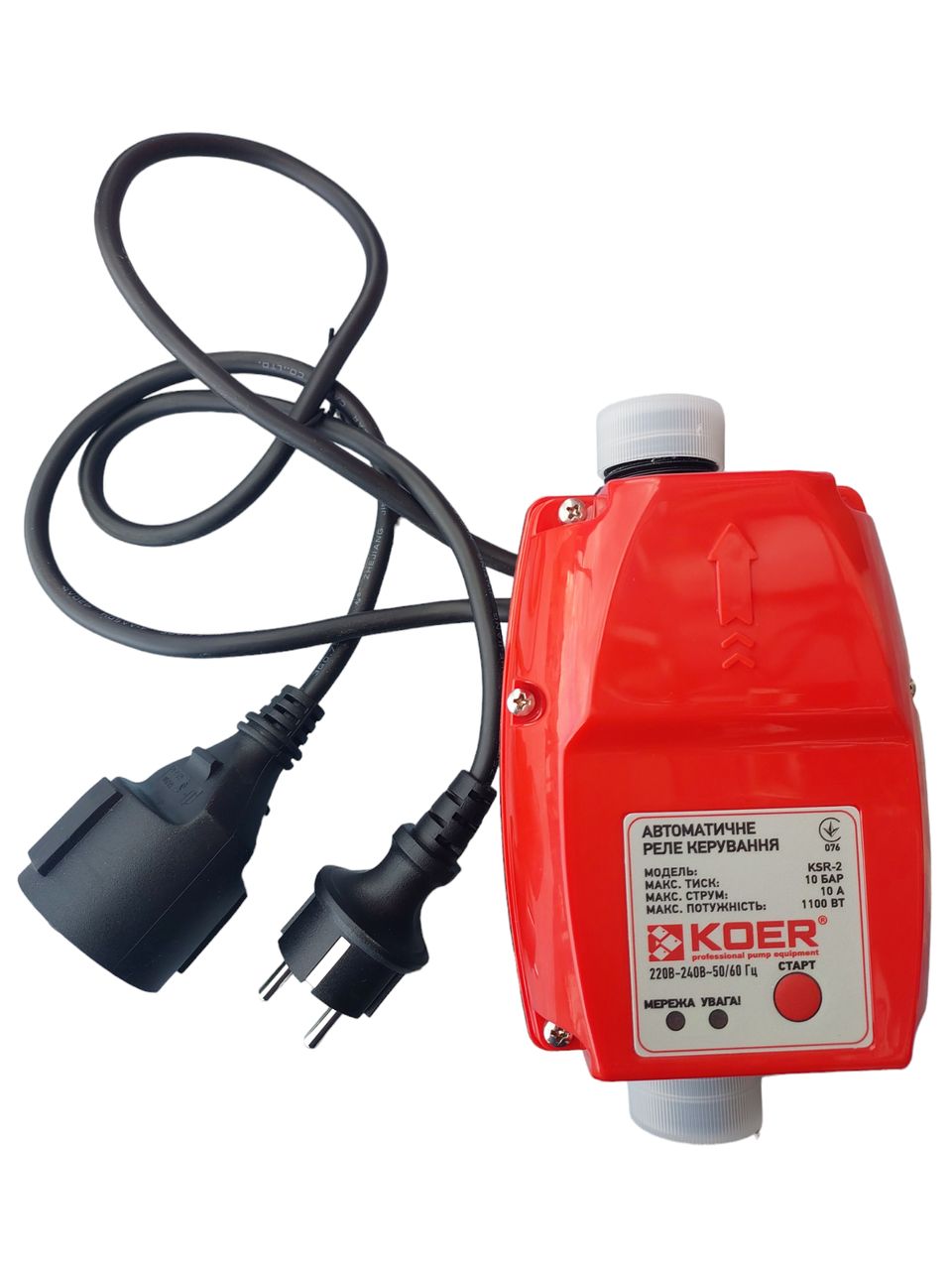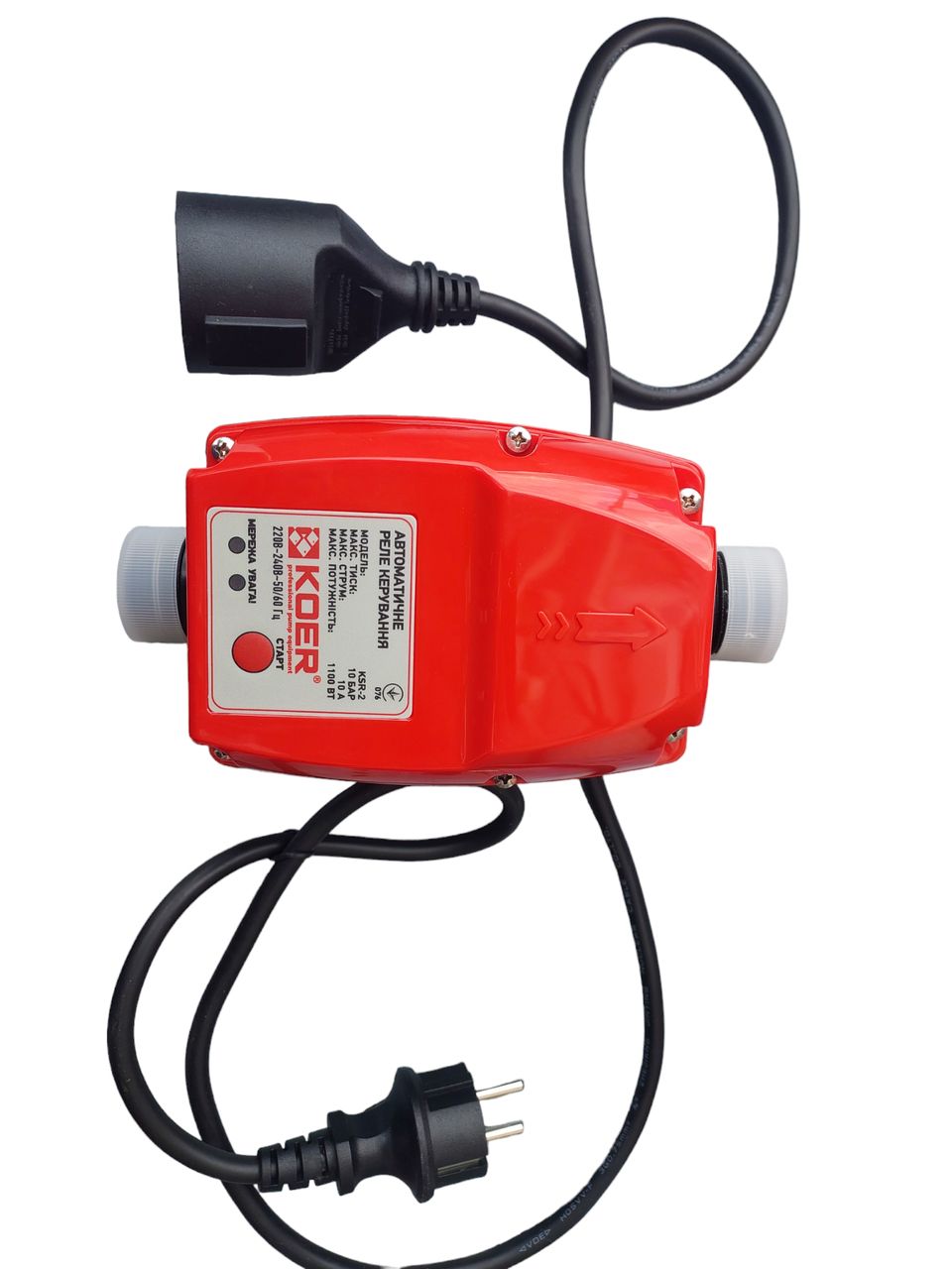 Контролер тиску Koer KSR-2 відключає насос за відсутності тиску, запобігаючи роботі насоса без води. Час спрацьовування захисту по "сухому ходу" - 10 секунд. Даний контролер оснащений вилкою та розеткою, що значно спрощує монтаж!! Koer KSR-2 електронний пристрій керування насосом призначений для автоматичного включення та вимикання електричного насоса при падінні тиску (відкриття крана), та підвищенні тиску в системі (закриття крана) відповідно. Пристрій керування насосом вимикає насос за відсутності тиску, запобігаючи роботі насоса без води. Час спрацьовування захисту по "сухому ходу" - 10 секунд. Максимальна температура води - 60 ° С. Рекомендується використовувати Koer KSR-2 у системах водопостачання, у яких відсутні зважені частки. Якщо це неможливо, слід встановити фільтр на вході у пристрій. У традиційній системі водопостачання з реле тиску та гідроакумулюючим баком насос відключається при досягненні певного тиску. На противагу цьому у схемі з пристроєм Koer KSR-2 насос відключається при зниженні потоку води нижче за мінімальне значення. При досягненні мінімального потоку відбувається затримка вимикання від 7 до 15 секунд. Логіка цієї функції – скоротити кількість включень насоса. Однією з основних переваг цього пристрою є можливість роботи насоса без гідроакумулятора. Такий спосіб краще використовувати при довготривалих водорозборах, поливі, перекачуванні, а також для економії місця в приміщенні або приямці. Koer KSR-2 також може використовуватися з гідроакумулюючим баком та реле автоматики.Характеристики