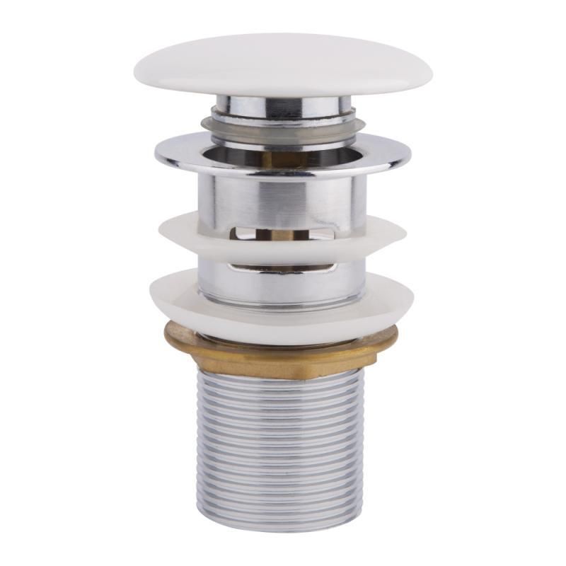 Донний клапан Qtap WHI F0081 виготовлений із латунної фурнітури хромованого кольору та білої керамічної кришки з приємним блиском, яка матиме чудовий вигляд на дні раковини такого ж покриття. Виріб дасть змогу перекрити зливний отвір у разі потреби та використовувати мийку як таз, а наявність переливу вбереже вас від потопу, якщо ви ненадовго відверталися під час набирання води. Клапан швидко монтується й просто керується. Поєднання універсальне зі стандартним кроком різі.