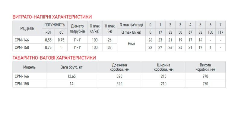 Модель CPM-146 є поверхневим відцентровим насосом потужністю 0,55 Вт. Він має мідну обмотку, що забезпечує стабільність роботи та довговічність.