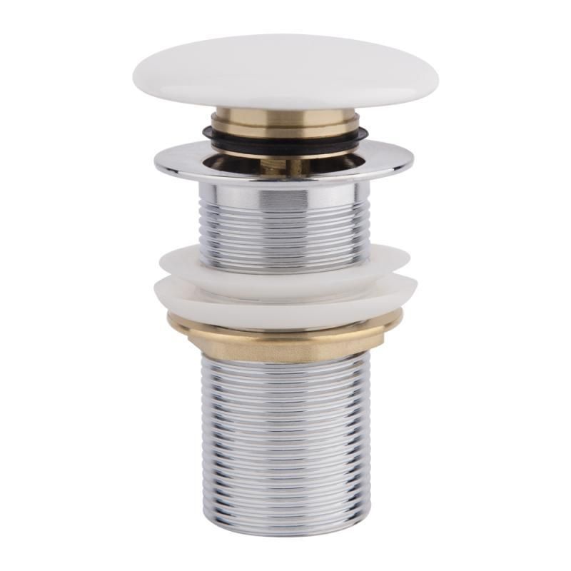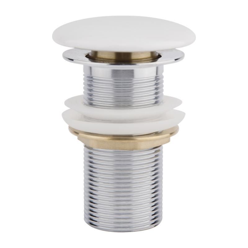 Донний клапан Qtap WHI F008 виготовлений із латунної фурнітури хромованого кольору та білої керамічної кришки, яка матиме чудовий вигляд на дні раковини такого ж кольору. Він дасть змогу перекрити зливний отвір у разі потреби та використовувати мийку як таз, а також запобігти неприємним запахам каналізації й економити ресурси води. Клапан швидко монтується й просто керується за допомогою одного натискання на круглу кришку. Поєднання універсальне зі стандартним кроком різі.