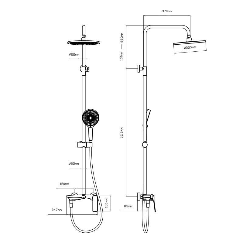 Діаметр лійки, ммВерхний душ: 255