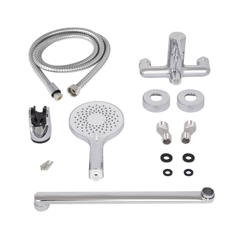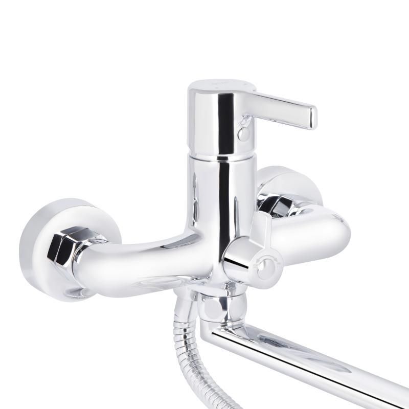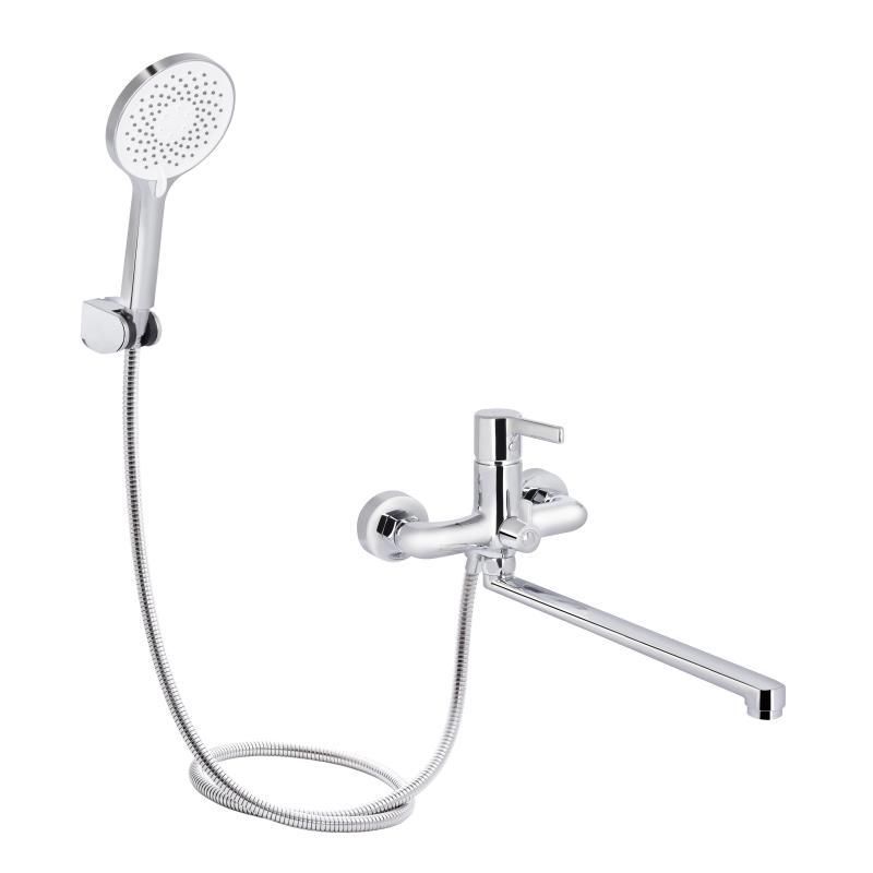 Змішувач для ванни Qtap Jay з довгим поворотним виливом (з душовим гарнітуром) QTJAY2601CRW45552 В наявності