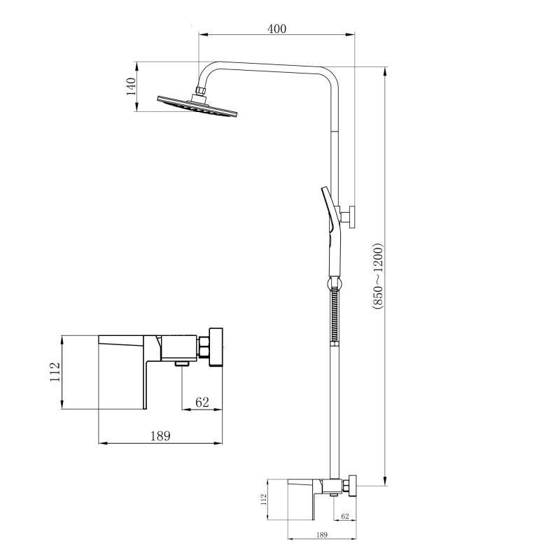 Висота душової стійки, мм815-1200