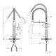 Важливою особливістю цього змішувача є тримач, який фіксує вилив. Вилив може бути як у зафіксованому положенні, так і вільно маневрувати, оскільки він гнучкий, що робить його надзвичайно зручним в експлуатації. Змішувач має висоту виливу 170 мм і довжину 185 мм у зафіксованому положенні. Гнучкий вилив дає змогу легко маневрувати та регулювати напрямок води, що дає змогу легко мити великі предмети побуту.