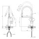 Важливою особливістю цього змішувача є тримач, який фіксує вилив. Вилив може бути як у зафіксованому положенні, так і вільно маневрувати, оскільки він гнучкий, що робить його надзвичайно зручним в експлуатації. Змішувач має висоту виливу 195 мм і довжину 210 мм у зафіксованому положенні. Гнучкий вилив дає змогу легко маневрувати та регулювати напрямок води, що дає змогу легко мити великі предмети побуту.
