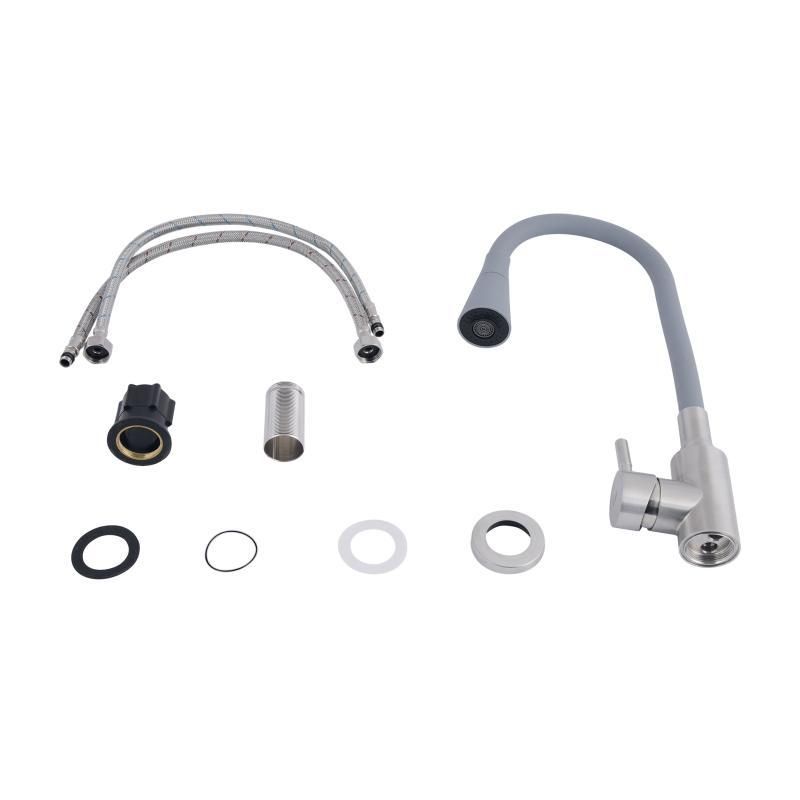 Lidz Aria 015F31 Змішувач для кухні з гнучким виливом (k35) Grey/Nickel вирізняється стильним сірим кольором із нікельованими елементами. Гнучкий вилив дає змогу легко керувати потоком води, забезпечуючи зручність у використанні, а високоякісні матеріали гарантують довгий термін експлуатації.