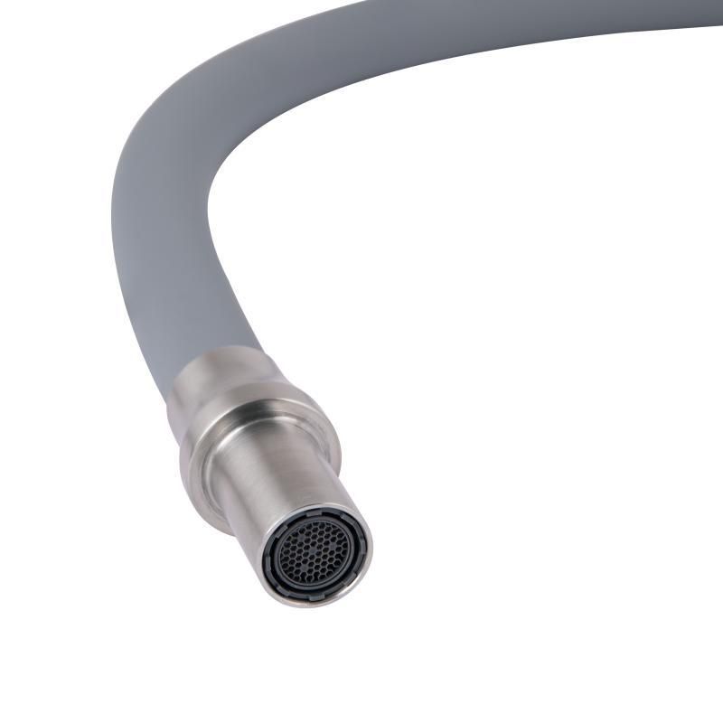 Lidz Aria 020F3 Змішувач для кухні з гнучким виливом з під'єднанням для питної води (k35) Grey/Nickel — сірий змішувач із можливістю приєднання питної води. Гнучкий вилив полегшує керування напрямком потоку води, а якісні матеріали забезпечують довговічність і надійність в експлуатації.