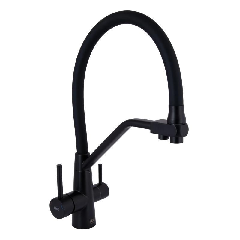 Змішувач для кухні Lidz Aria 020F3 з гнучким виливом з під'єднанням для питної води (k35) LDARI020F3BLA39212