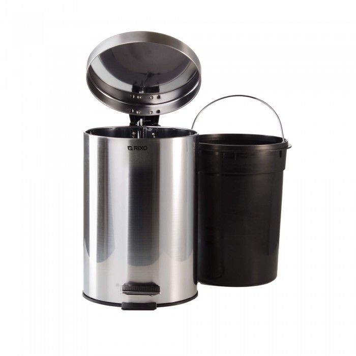 Відро для сміття з педаллю Rixo Solido PB212S виготовлене з шліфованої (матової) нержавіючої сталі. Відро має надійний натискний механізм, внутрішній кошик виготовлений з якісного, щільного пластику, що забезпечує легкість в обслуговуванні. Відро оснащено доводчиком, що дозволяє кришці закриватися плавно і без зайвого шуму. Педаль на відрі для сміття дозволяє уникнути прямого контакту рук з кришкою, що робить його гігієнічним та зручним у використанні. Відро для сміття з педаллю може бути використане в різних приміщеннях, таких як квартири, приватні будинки, офіси, готелі, салони краси тощо. Кошик для сміття з педаллю Rixo Solido PB212S чудово поєднується з іншим обладнанням з колекції Solido