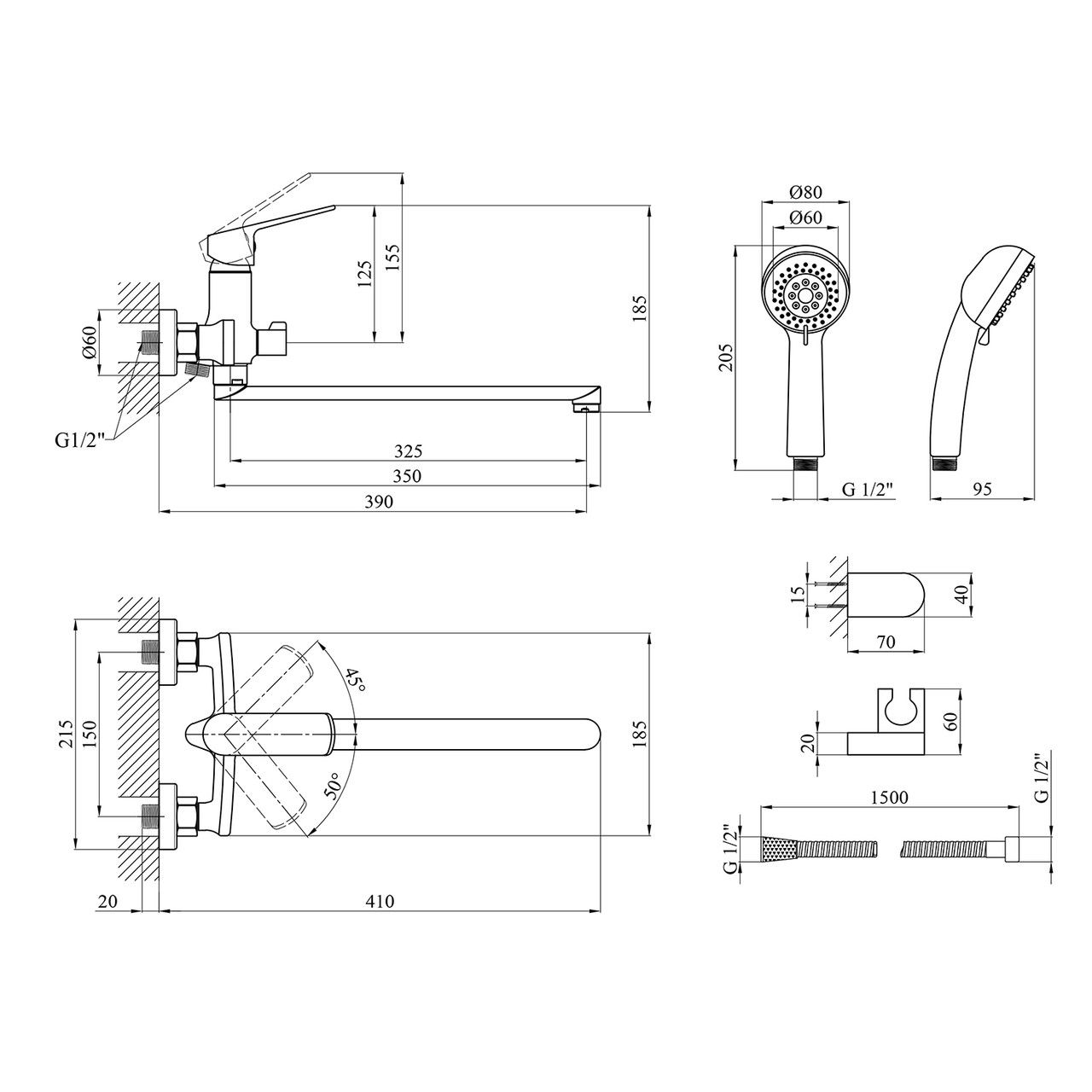 ОбладнанняСмеситель, лейка для ручного душа, душевой шланг, кронштейн для ручного душа, крепежи, инструкция.