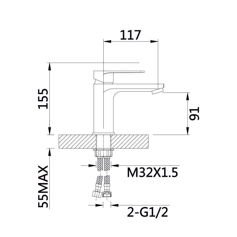 Висота змішувача для раковини Qtap Aries 155 мм, з виливом 117 мм.