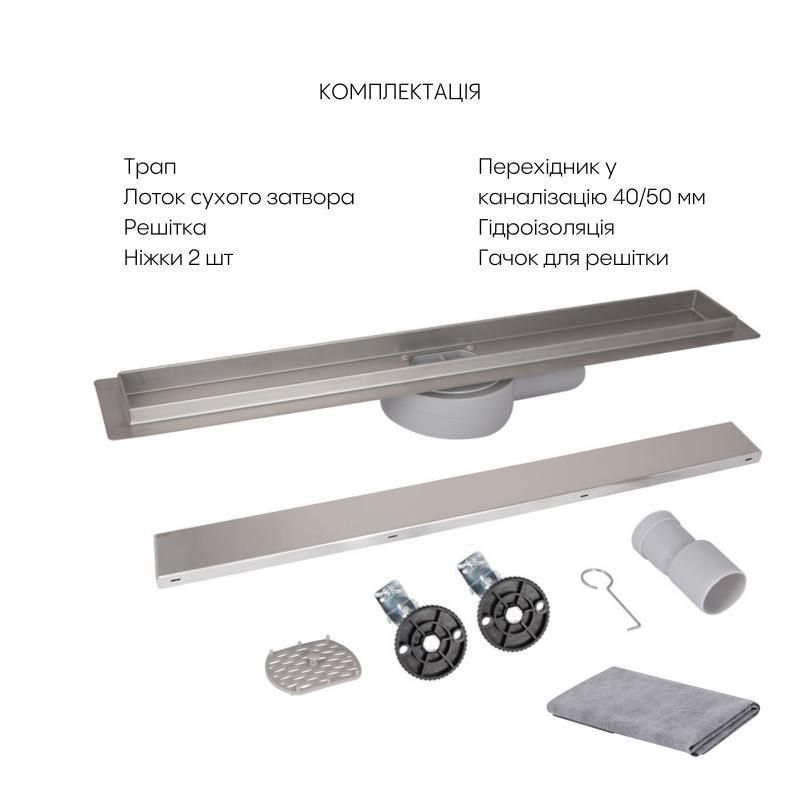 Трап із неіржавкої сталі Qtap Scorpio Tile700 лінійний із сухим закривом під плитку