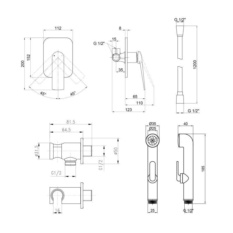 ОбладнанняСмеситель (QTVLA6228102NC), подключение (QTCRMBH030), лейка (QTCRMA021), шланг (QTHADPVC120C)