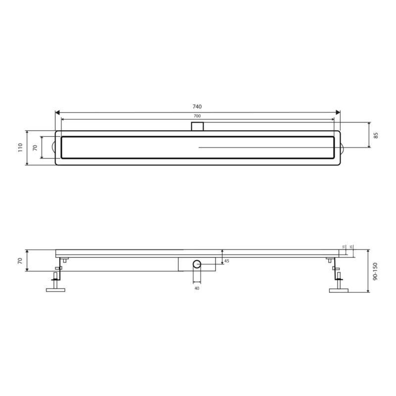 Корпус лінійного трапа з неіржавкої сталі Taurus 700 із сухим закривом Qtap