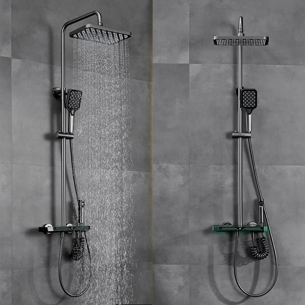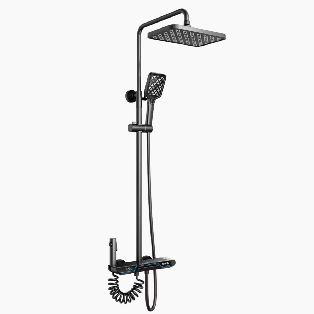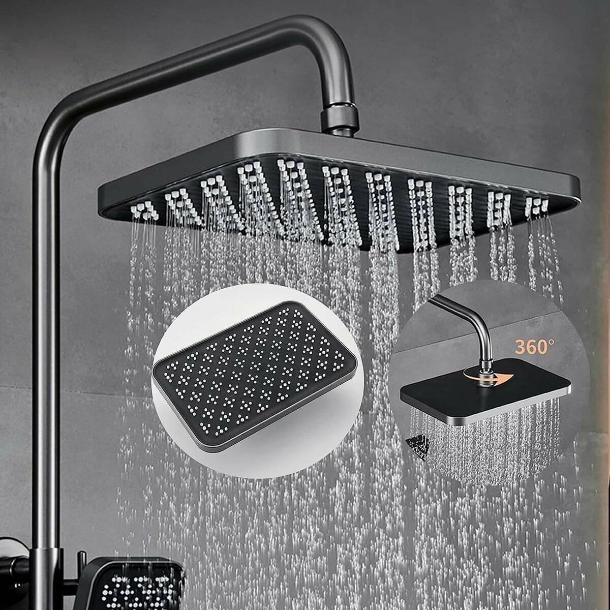 - Верхній душ: Великий квадратний душ із декількома режимами струменя для максимального комфорту.