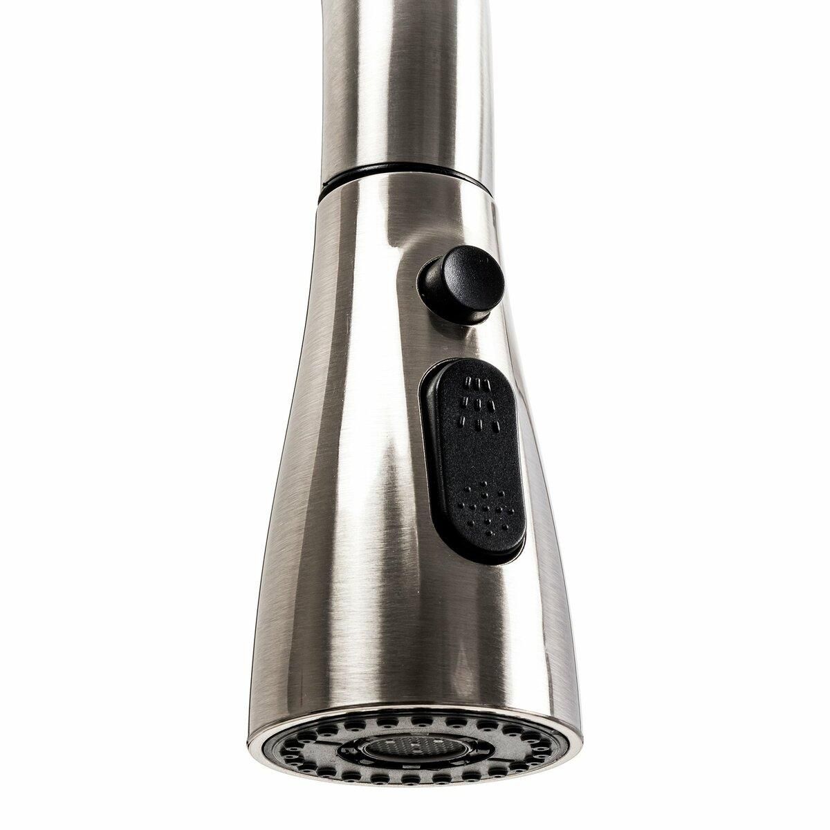 Змішувач "Водоспад" ZS84 виготовлений нержавіючої сталі з обробкою brushed, що надає йому стильного та сучасного вигляду. Завдяки поворотному, високому та висувному гнучкому виливу, він забезпечує максимальну зручність у користуванні. З висотою 415 мм та довжиною виливу 160 мм, цей змішувач ідеально підходить для будь-якої кухонної мийки.