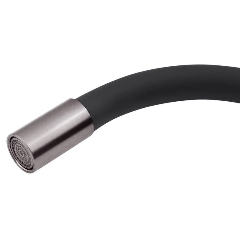 Змішувач для кухні MiX Seo 011 Graphite виконаний з харчової нержавіючої сталі марки AISI 304. Цей матеріал не схильний до корозії і не боїться вологи і різких перепадів температури і тиску. Змішувач оснащений гнучким силіконовим виливом, що робить його універсальним. Корпус змішувача та аератор гусачка виконані у сучасному графітовому кольорі, завдяки цьому він ідеально поєднується з більшістю кухонних мийок із нержавіючої сталі.