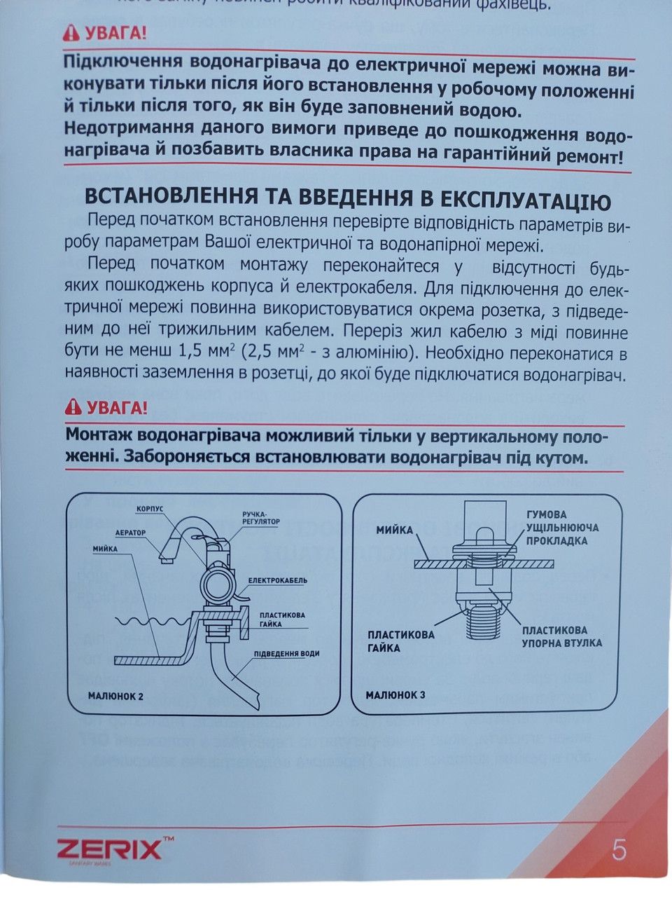 Мінімальний тиск 0,4 Атм