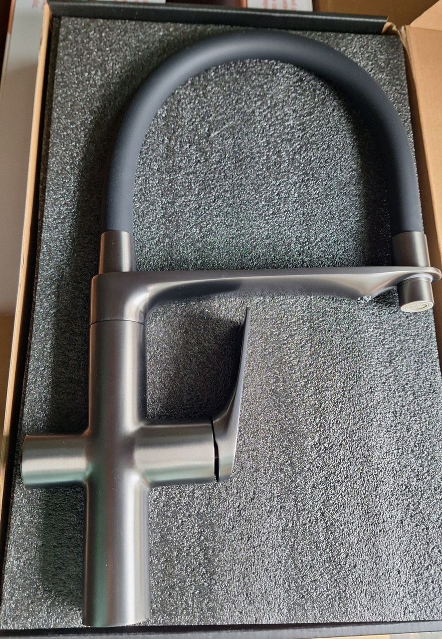 Змішувач для кухні латунний з гнучким виливом та під фільтр MAGNET 021 SS COLOR REFL.GREY В наявності