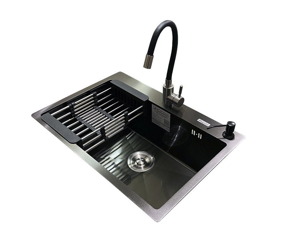 Розмір: 600 х 450 мм Глибина чашки: 230 мм Товщина металу: 3.0/1.2 мм Тип покриття: Сталь спрямованого шліфування Комплектація: кухонна мийка, сифон, армована гофро-шланг, змішувач Romzha Flex BL