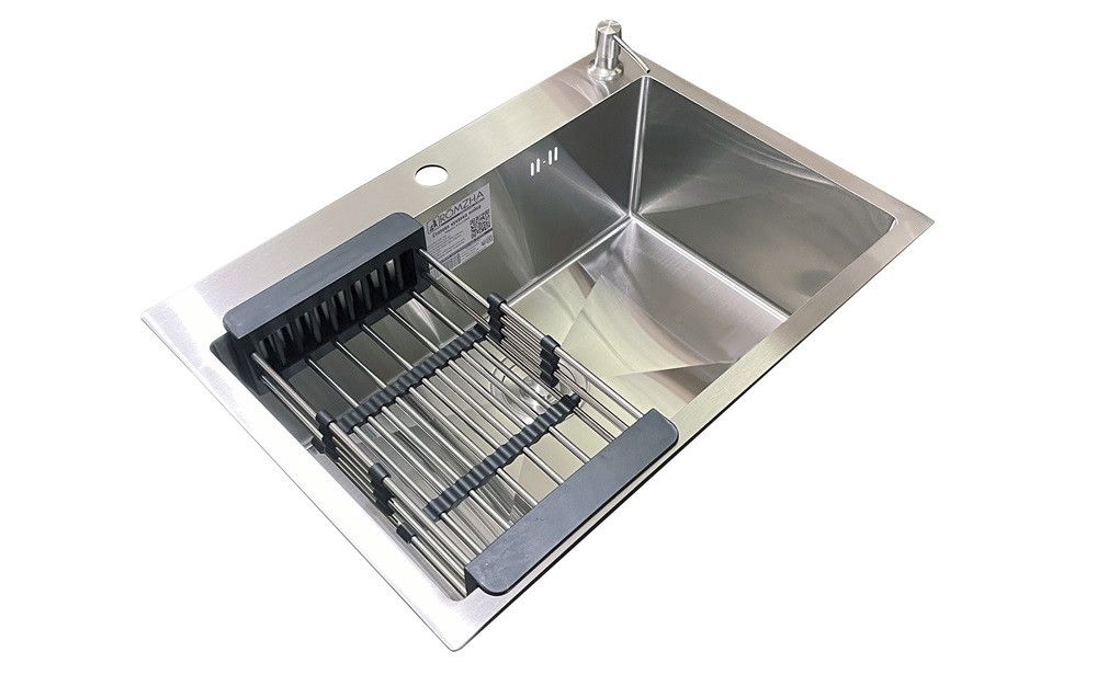 | Комплектація | кухонна мийка, сифон, армований гофрошланг, кошик із неіржавкої сталі та дозатор для рідкого мийного засобу |