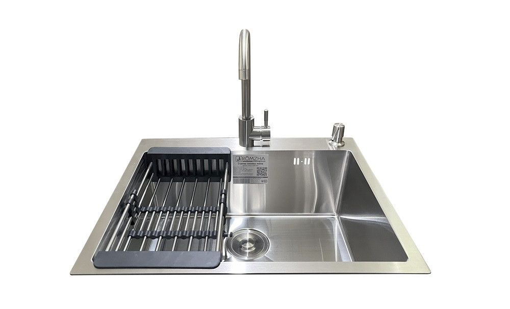 Комплект мийка + змішувач Romzha Arta U-550S (A). Сталева мийка зі змішувачем на кухню