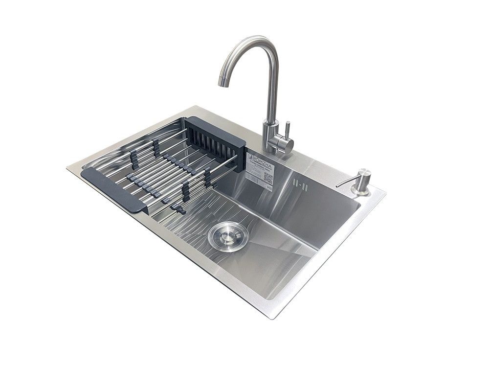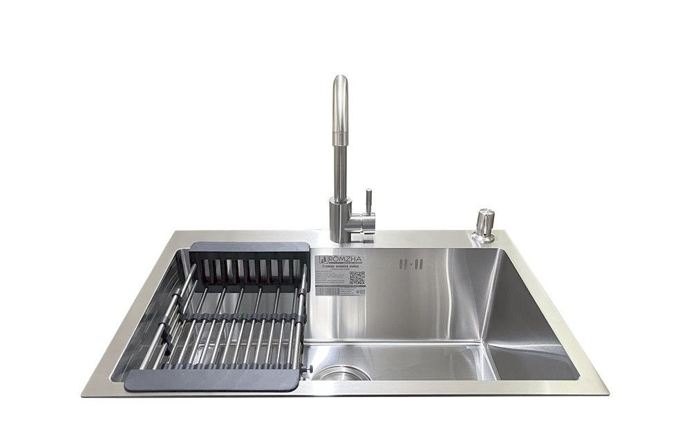Комплектація: кухонна мийка, сифон, армованний гофро-шланг, корзина з нержавіючої сталі та змішувач Romzha Marian J