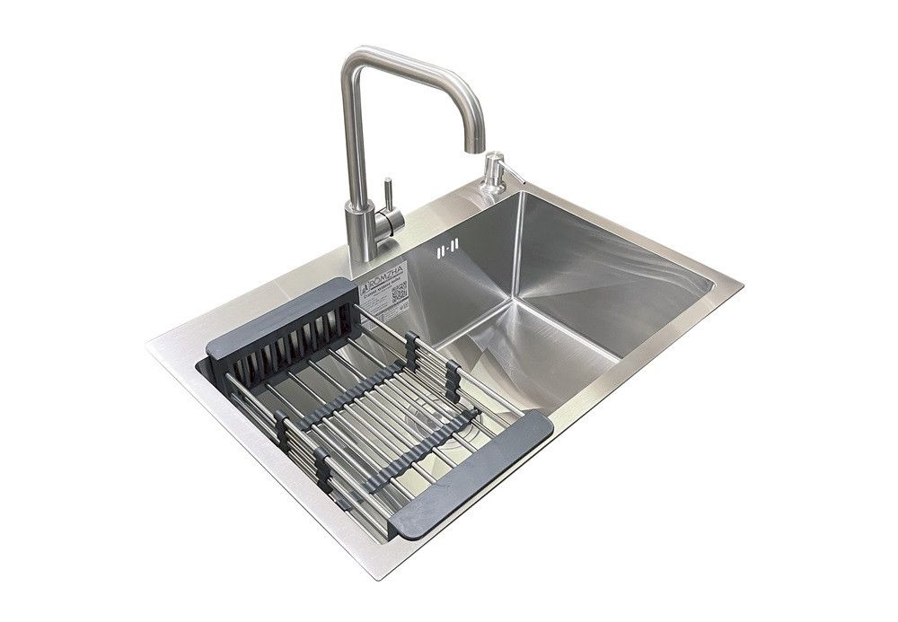 Комплектація: кухонна мийка, сифон, армованний гофро-шланг, корзина з нержавіючої сталі та змішувач Romzha Marian U
