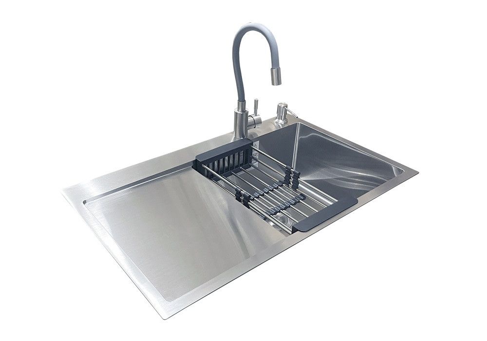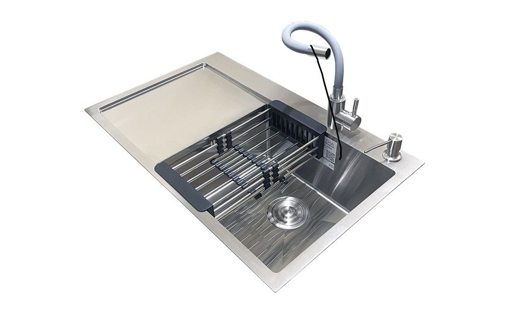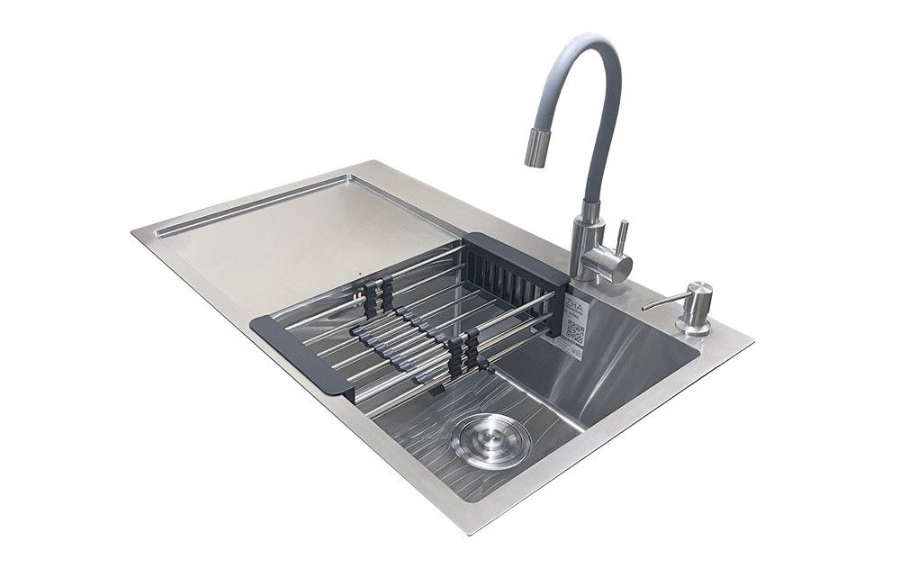 Комплектація: кухонна мийка, сифон, армованний гофро-шланг, корзина з нержавіючої сталі, дозатор та змішувач Romzha Flex Grey