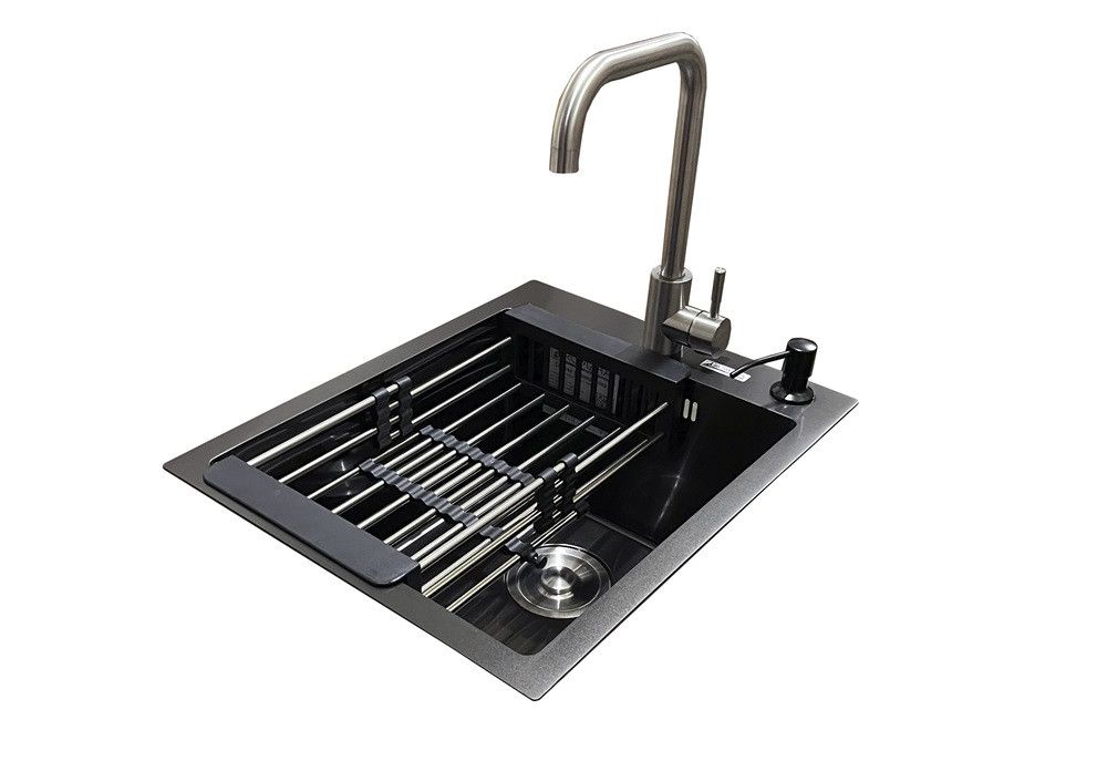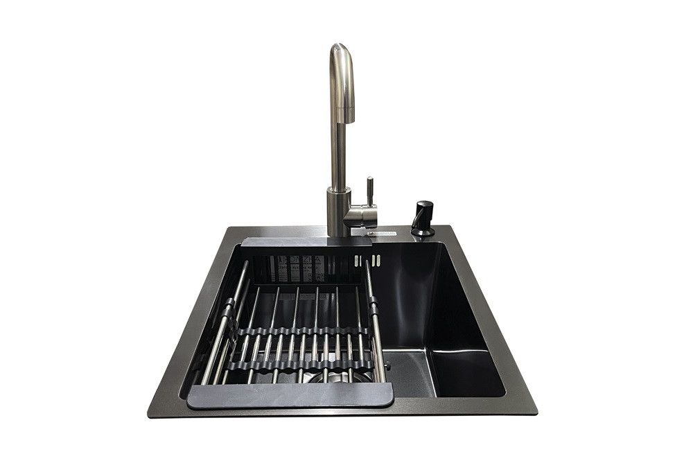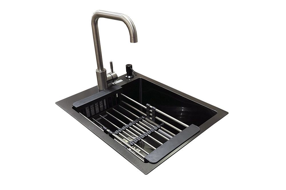 Комплект мийка + змішувач Romzha Arta U-350S BL (B). Чорна мийка з нержавіючої сталі зі змішувачем