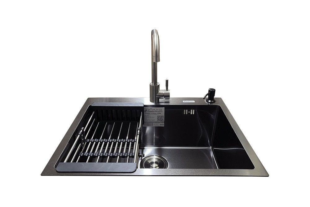 Комплектація: кухонна мийка, сифон, армованний гофро-шланг, корзина з нержавіючої сталі, дозатор та змішувач Romzha Marian U