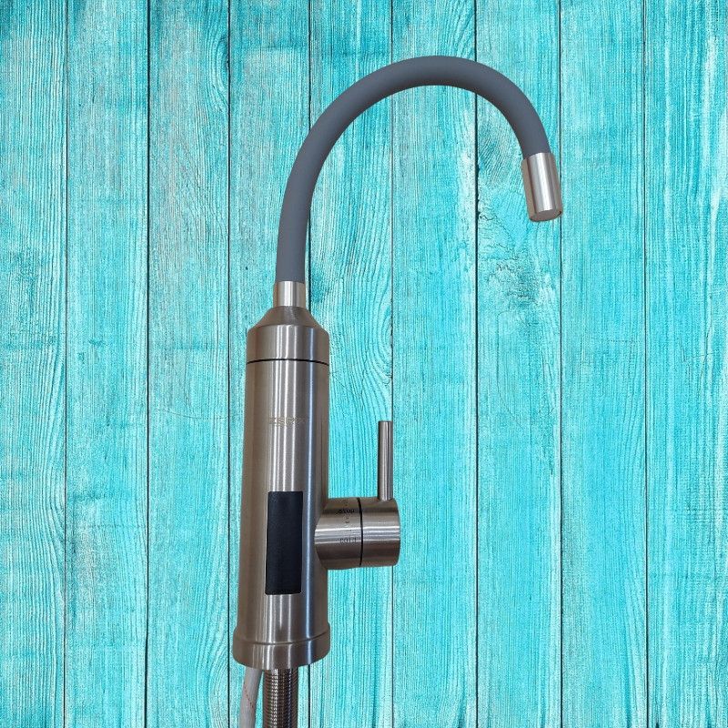 Корпус проточного водонагрівача виконаний із високоміцної нержавіючої сталі, що значно збільшує термін його експлуатації. Водонагрівач оснащений гнучким силіконовим виливом сірого кольору з аератором на кінці гуся.