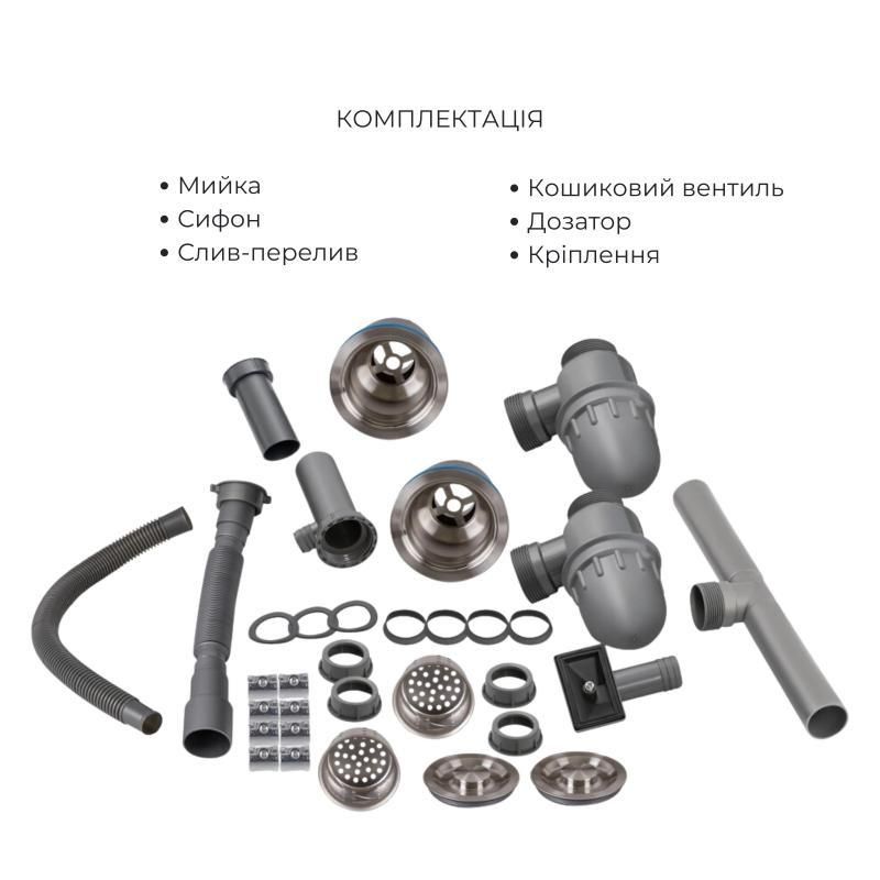 Комплект Lidz Handmade H7843 (Brushed) з двома чашами та шліфованим фінішем Brushed забезпечує максимальну зручність. Містить дозатор і кошик Lidz K01G для повної організації простору.