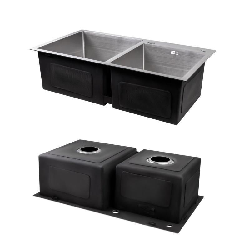 Комплект Lidz Handmade H7843 Мийка для кухні з двома чашами інтегрована Brushed у комплекті з дозатором +