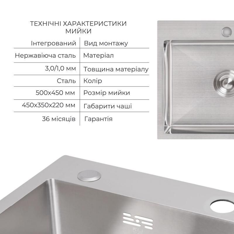 Комплект Lidz Handmade H5045 Мийка для кухні інтегрована Brushedв комплекті з дозатором + Lidz K01G