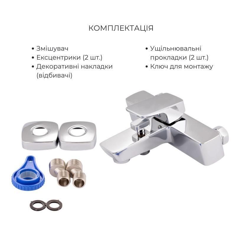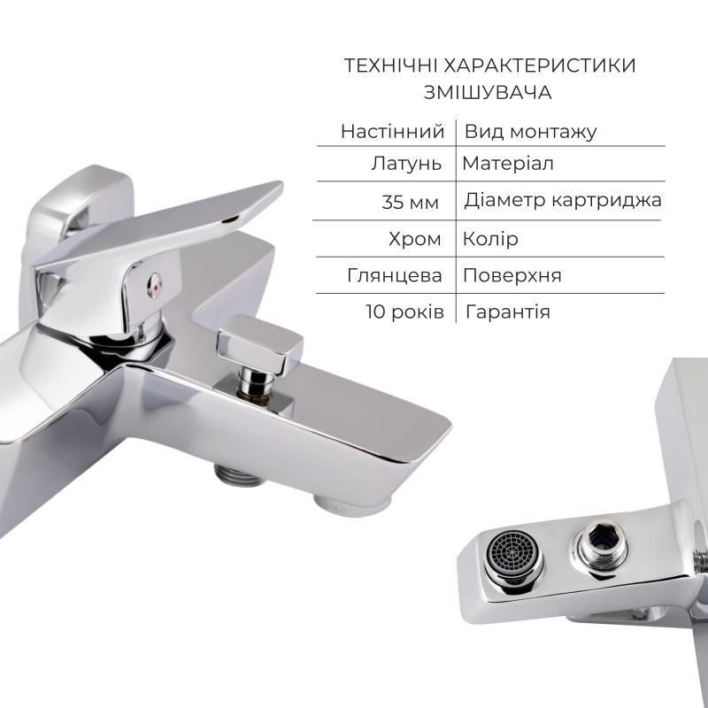 Комплект для ванни Qtap Namesti: Змішувач QTNAM3025102DC + Лійка QTRUC125CRM45779+ Шланг QTHADPVC160C +